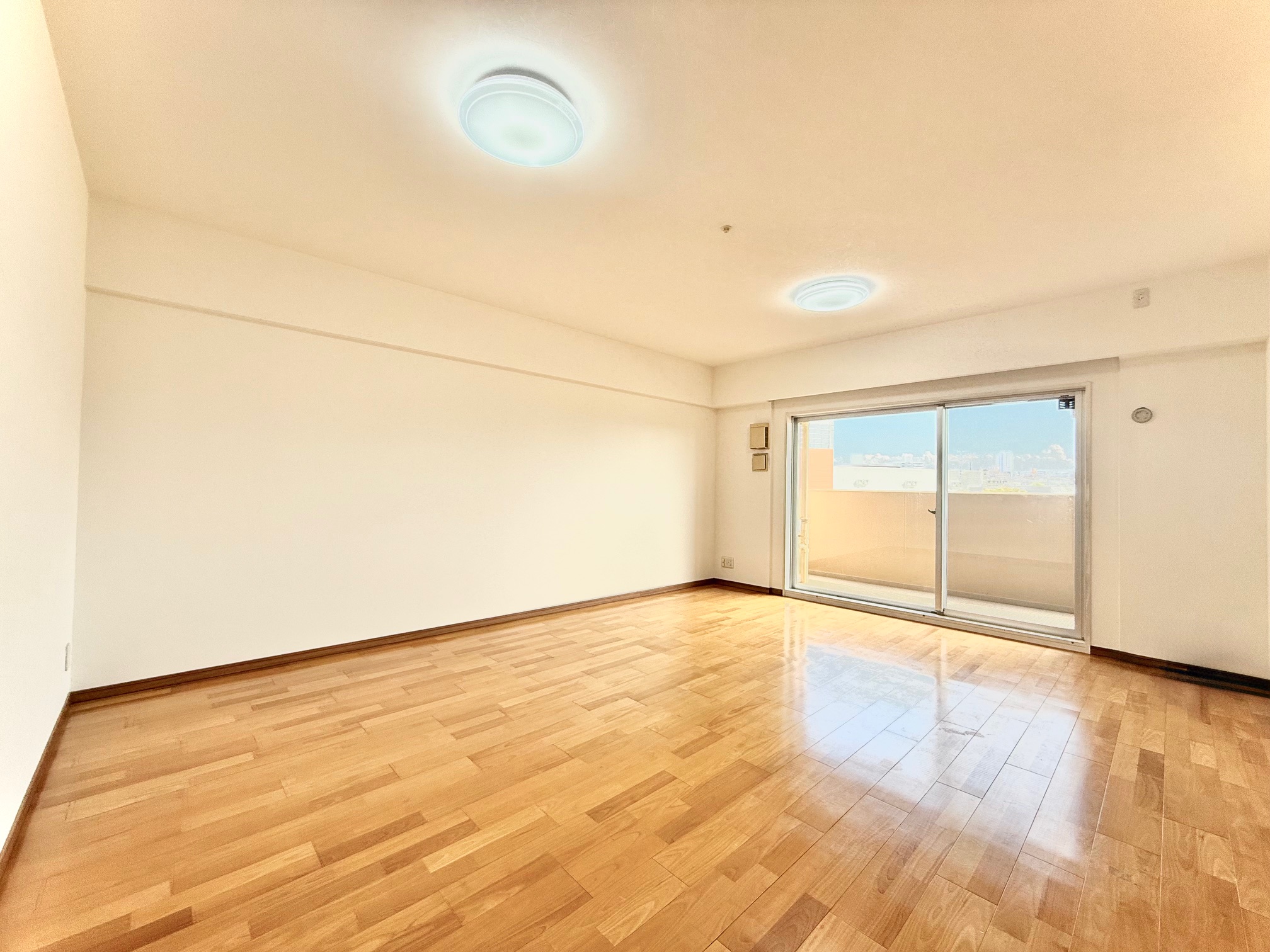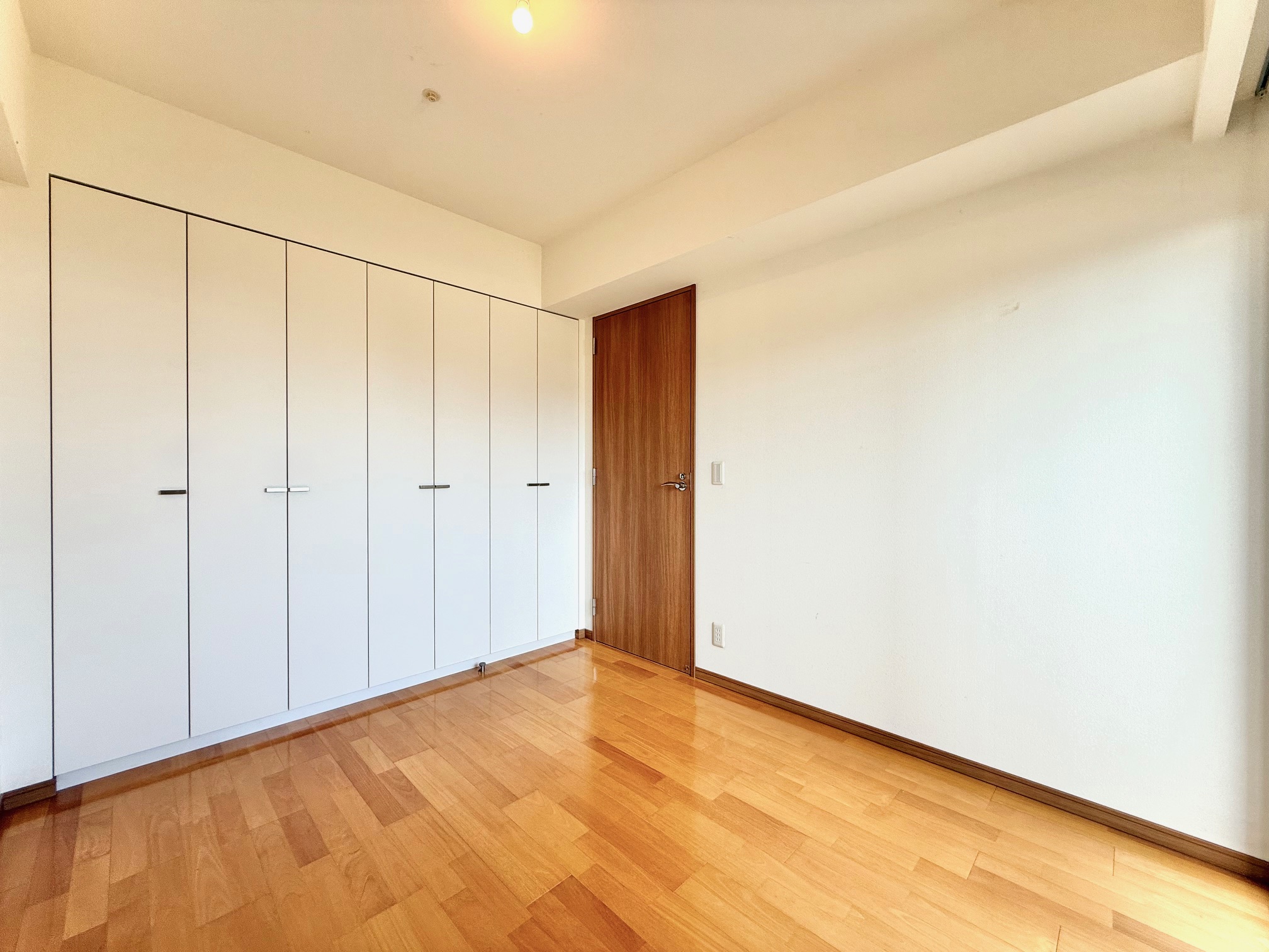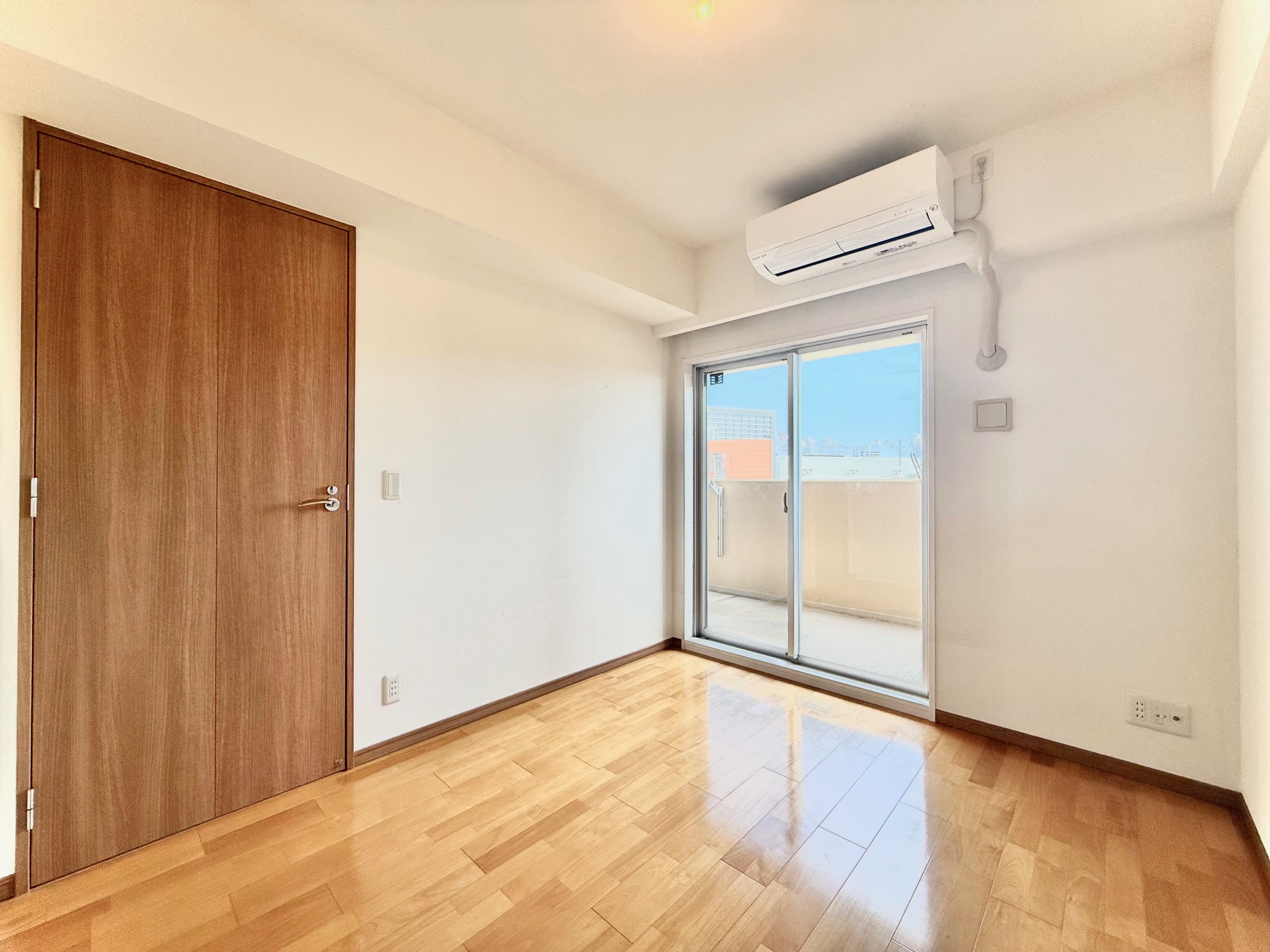 約5.1帖のバルコニーに隣接する洋室です。大き目のクローゼットが備わっており、居住空間をすっきりと保つことができます。