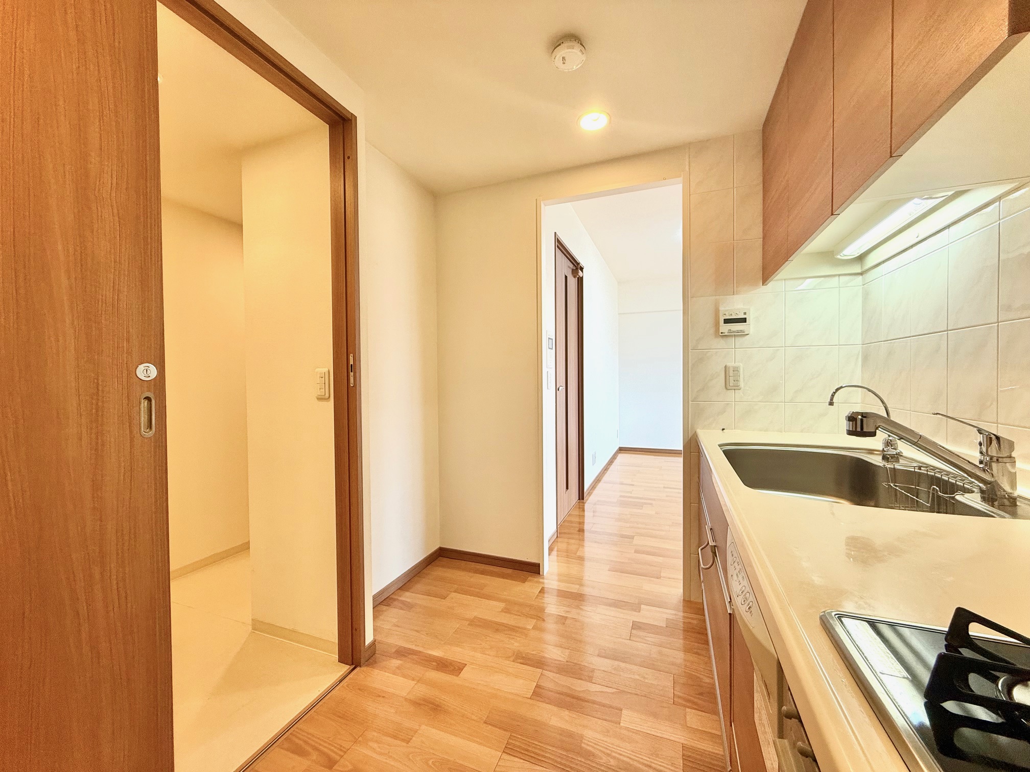 キッチン・洗面室を繋ぐ家事動線があり、快適な生活をサポートします。調理中の煙や嫌な臭いが、生活スペースに広がらないのも、独立型キッチンならではの嬉しいポイントです。