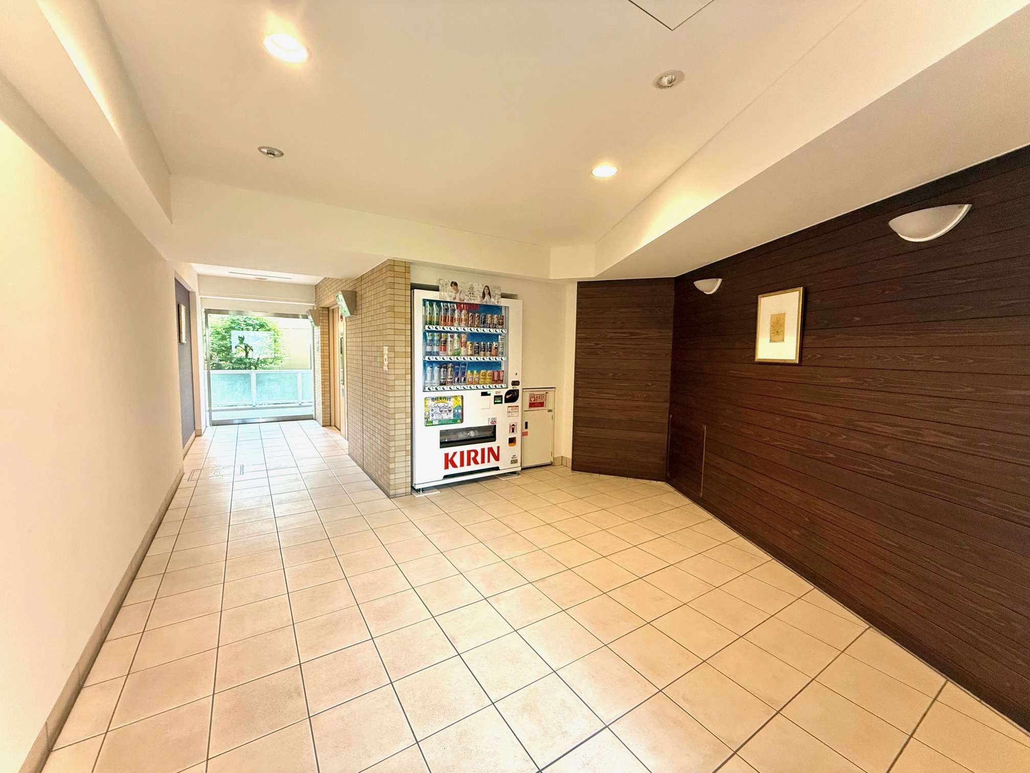 空調の効いたエレベーターホールには自動販売機があり便利です。