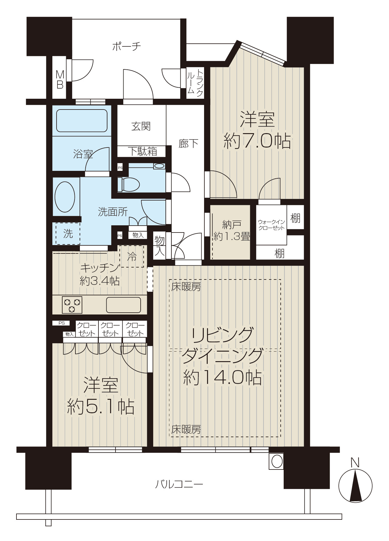 バルコニー面積:13.3m²