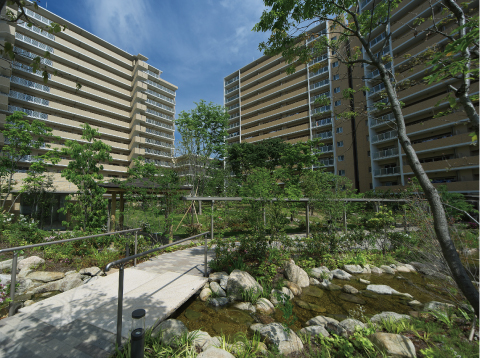 敷地の約35%が緑地として設計されており、マンションながら緑豊かな自然を感じることができます。