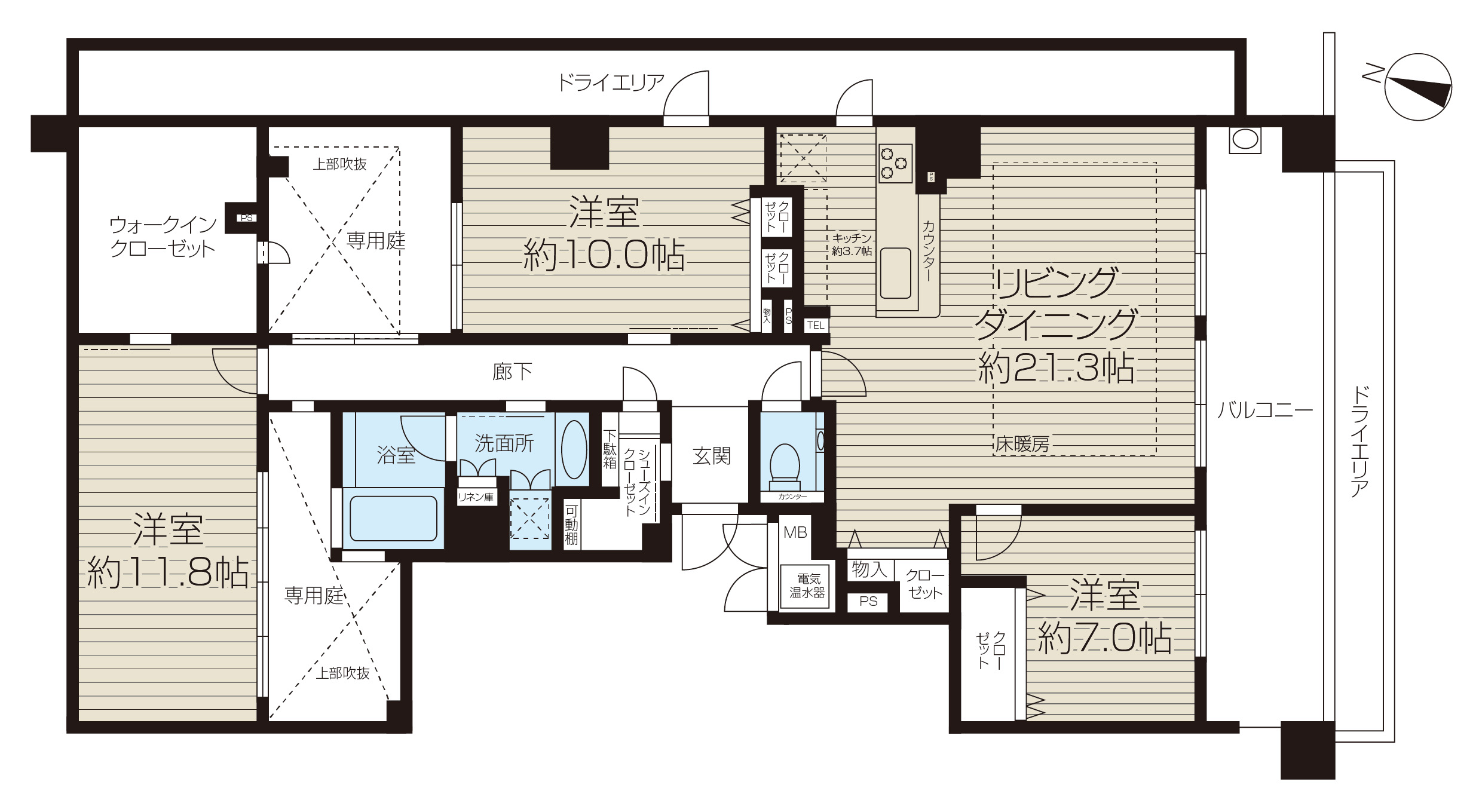 ■LDK約21.3帖、129.41㎡・3SLDKの間取り